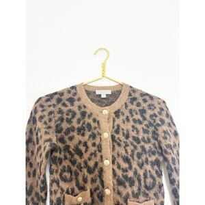 J. Crew Brushed Sweater Lady Jacket Leopard Print Size XXS Wool Quiet Luxury
