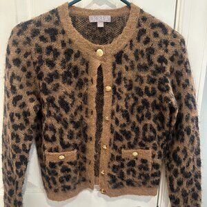 Sold out online J. Crew Brushed Sweater Lady Jacket in leopard print, size XXS, excellent condition, worn once.