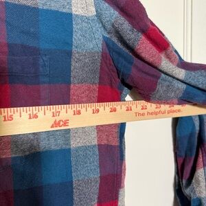 J. Crew Brushed Twill Plaid Flannel Shirt Button Down Red Blue Sz Large Slim Fit