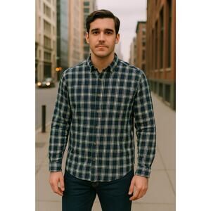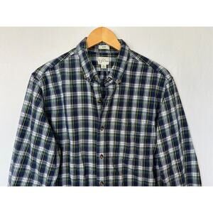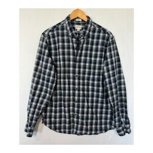 J Crew Brushed Twill Slim Plaid Flannel Shirt Mens Size Large Button Up Blue