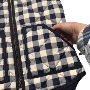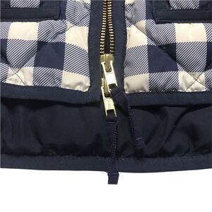 J. Crew Buffalo Check Cream and Navy Double Zip Down Filled Puffer Vest Sz XXS