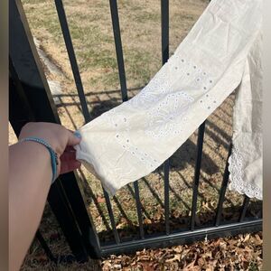 Elevate your wardrobe with this chic cream linen eyelet top from J. Crew. Perfect for any occasion, this stylish piece offers a blend of elegance and comfort.