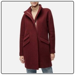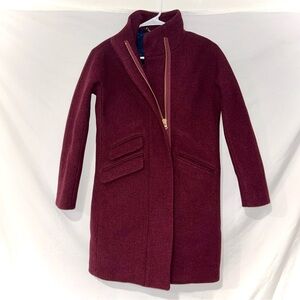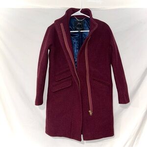 J. Crew Burgundy Cocoon Italian Stadium Cloth Wool Winter Long Coat