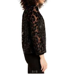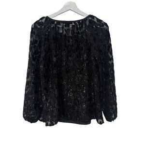 J Crew Burnout Metallic Velvet Black Leopard Long Sleeve Top Blouse Sz Small