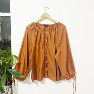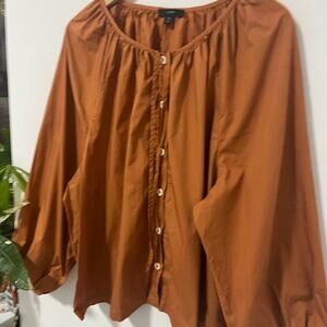 J. Crew Burnt Orange Button Front Poplin Long Sleeve Top Orange Size 3X. Excellent condition, like new. Rust brown/orange color. Button closure. Relaxed fit. Flowy sleeves with tie detail.