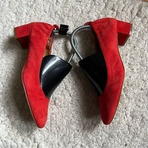 J. Crew: Burnt Orange Suede Elastic Back Rounded Toe Block Heels Size 8.5