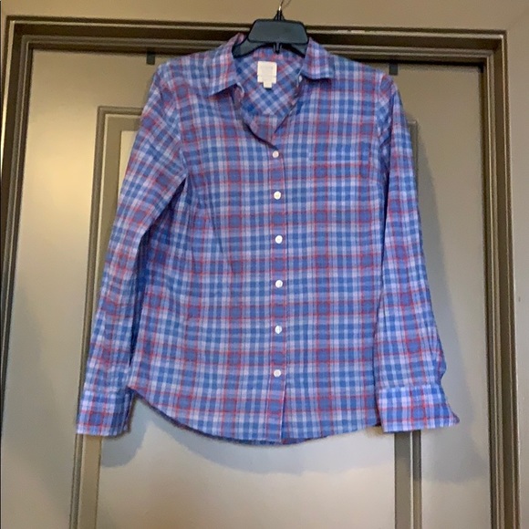 Women’s Blue Plaid J Crew “Perfect Fit” Button Down in size Small.