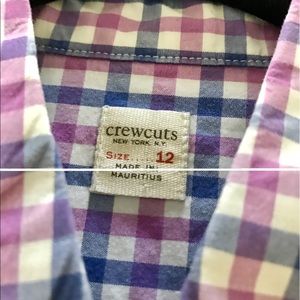 - 10/10 condition, this button down J Crew shirt is a blue/purple/white mix. Size 12 Men's/Boy's. If there are any questions about the item, feel free to contact me.