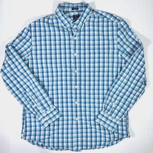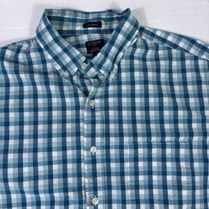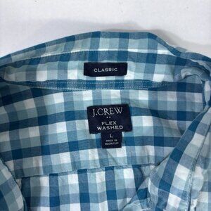 J Crew Button Down Flex Washed Shirt Mens Classic Large Turquoise/Blue Plaid Preppy Collegiate