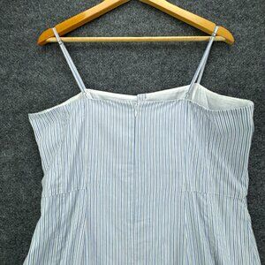 J Crew Button Down Poplin Dress 14 White Blue Stripe Long Maxi Coastal Flowy