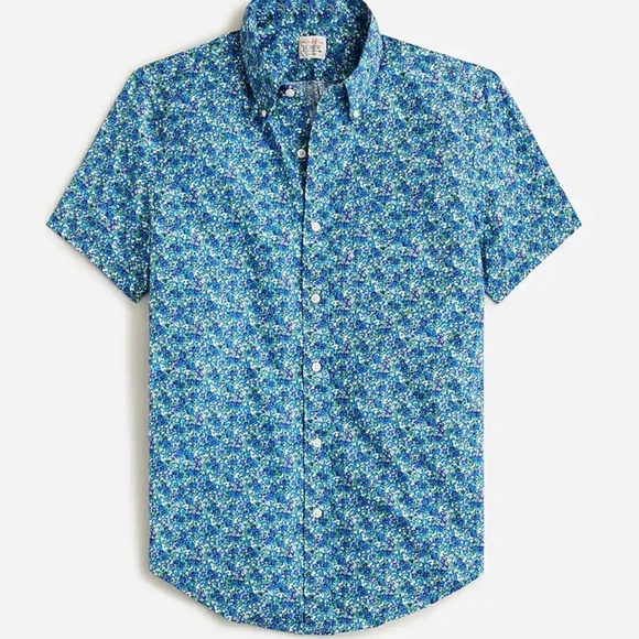 J. Crew Button Down Poplin S/S Shirt Men's Medium Blue Floral Secret Wash Summer