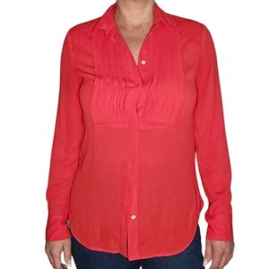 J. Crew Button Down Semi Sheer Long Sleeve Blouse Size 6 Red Dark Pink