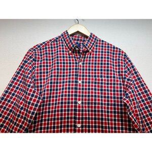 J. Crew Button Down Shirt Mens M Red Navy Plaid Long-Sleeve Classic Casual