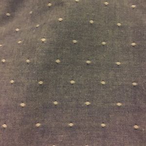 Light Blue Button down shirt with white stitched dots. Goes great with Khakis and ripped/distressed jeans.