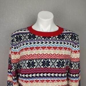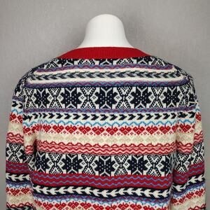 J. Crew Button Fair Isle Crewneck Sweater Lambs Wool Blend Size Large