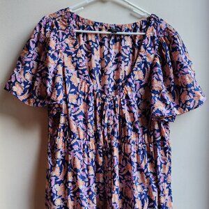 J. Crew Button Front Cotton Voile Beach Dress In Painted Block Print Size 2X