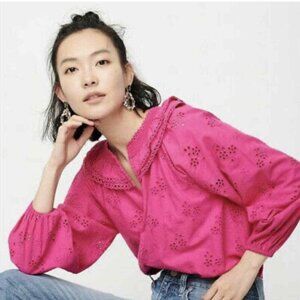 J. Crew Button Front Eyelet Peasant Top Size S Pink