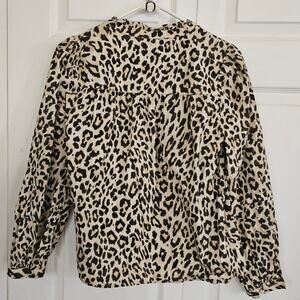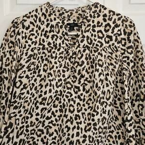 J. Crew Button Front Ruffleneck Popover Shirt XS Leopard Business Mobwife Cotton