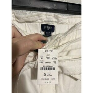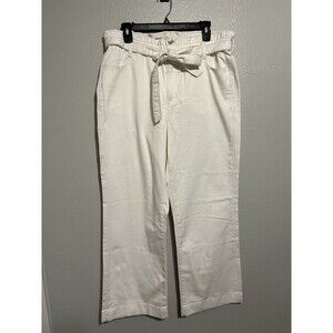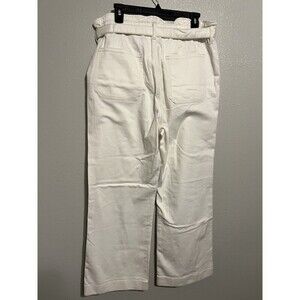 J. Crew Button Front Tie Waist Pant Chino White High Rise Straight 32 Tall NWT