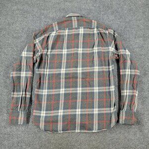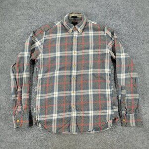 J Crew Button Shirt Men's Small Gray Red Plaid Flannel Long Sleeve Pocket Adult