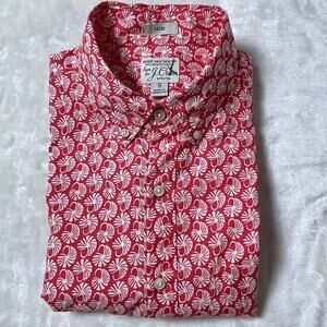 J Crew Button Up All Over Print Slim Mens Small Shells AOP Summer Beach Poolside