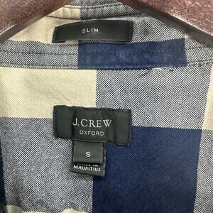 J. Crew Button Up Oxford Shirt Mens Small Slim Fit Blue Tan Buffalo Plaid Rustic