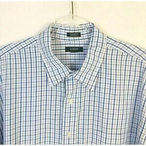 J Crew Button Up Shirt Men's XL 17 - 17.5 Blue Plaid Cotton Preppy Work School