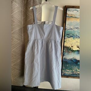 J Crew Button Front Dress Sz 12 Seersucker Stripe White/Blue Sleeveless NWT