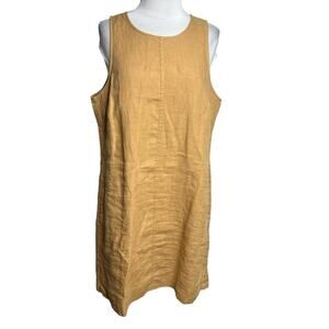 J. Crew Button-back linen shift dress tan brown Sz M