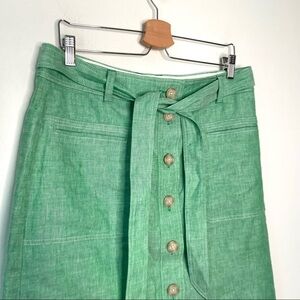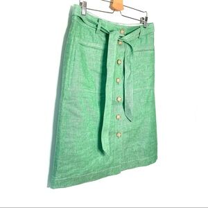 J. Crew | Button-front In Stretch Linen Poly Pencil Pockets Green Belted Skirt