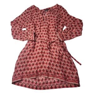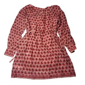 J. Crew Cabana Mini Dress Block Print Ramie Coral Pink Floral Long Sleeve Medium