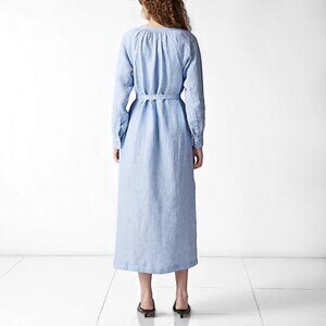 This breezy style comes with a V neckline that shows a hint of skin, a removable tie at the waist for a cinched-in effect and gathered details along the collar and cuffs. Plus, it's crafted from lightweight 100 percent linen to keep you cool all day long.