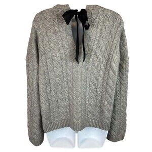 J. Crew Cable Knit Heather Gray Wool Blend w Back Tie Sweater Size M NWT