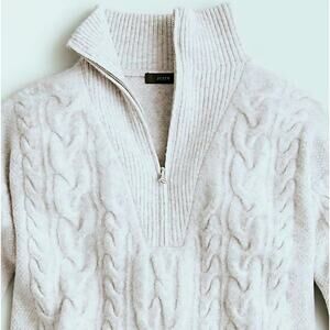J. Crew Cable Knit Quarter Zip Pullover Sweater has Ribbed Placket with Zipper.