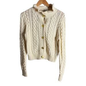 J. Crew Cable Knit Ruffle Neck Cardigan Sweater Butter Size M