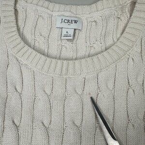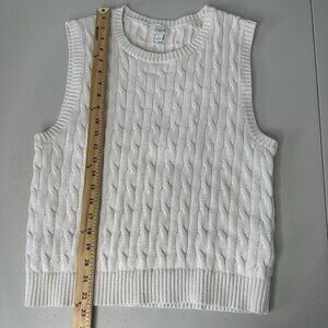 J Crew Cable Knit Sweater Vest Size L Natural Cream Preppy Cotton BS916
