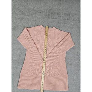 J Crew Cable knit Patchwork Tunic sweater Womens Medium Pink Wool Blend Casual