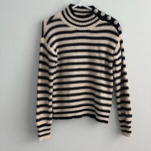 J. Crew Cable-knit mockneck pullover in stripe with jewel buttons