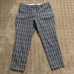 J Crew Cafe Cropped Ankle Pants Women's 8 Navy Blue White Rope Nautical Sailor.