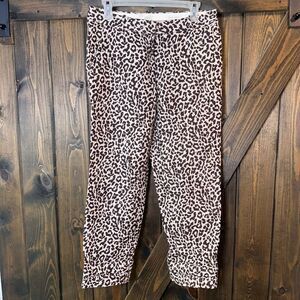 J Crew Cafe Capri Cropped Pants Leopard Animal Print 100% Linen Sz 2