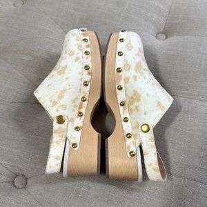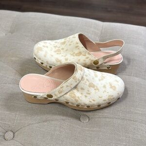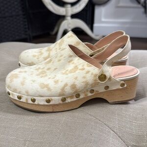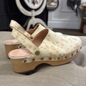 J. Crew Calf Haiar Convertible Strap Leather Wooden Clogs Size 6