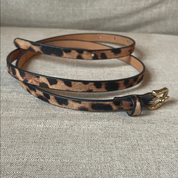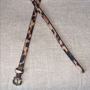 Stylish calf hair leopard belt by J. Crew. Features a sleek gold buckle. Adds a bold touch to any outfit.Size Medium. Like new.