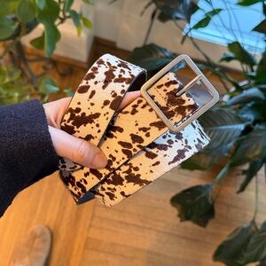 New without tags. Never worn. Leather calf hair J. Crew belt. White with brown speckles. Brushed silver hardware.