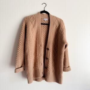 J. Crew Camel Cable Knit Stretch Merino Wool Button Cardigan Sweater Small