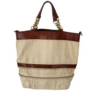 J. Crew Canvas and Leather Crossbody Tote Bag Expandable Two Way Carrying Straps
