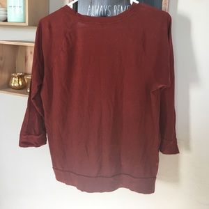 Excellent condition. J Crew cardigan. It's sort of a rust/burgundy color. It's very lightweight.