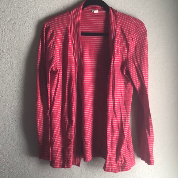Red and gray stripes. Classic piece that is super versatile! Lightweight so great transitional piece.