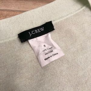 Light weight cardigan by J. Crew. Size S. Mint green with pearly buttons. 100% cotton. Ultra fine knit. In gently used condition with light wear. Sold in as is condition. Measurements approximate. See all photos.