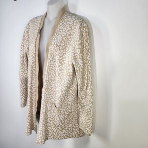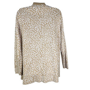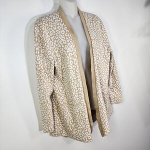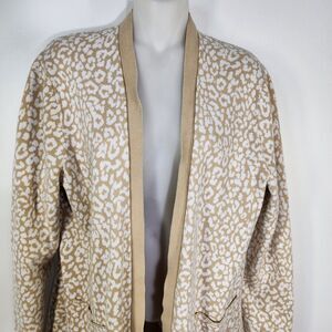 J. Crew Cardigan Sweater Large Leopard Open Khaki Ivory AW726 Animal Pockets