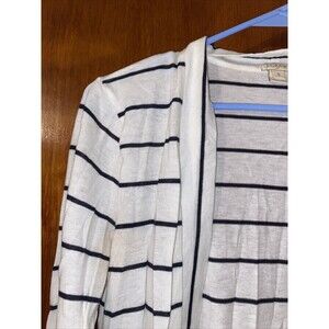 J. Crew Cardigan Sweater White Black Stripe Long Sleeve Coastal Classic Small